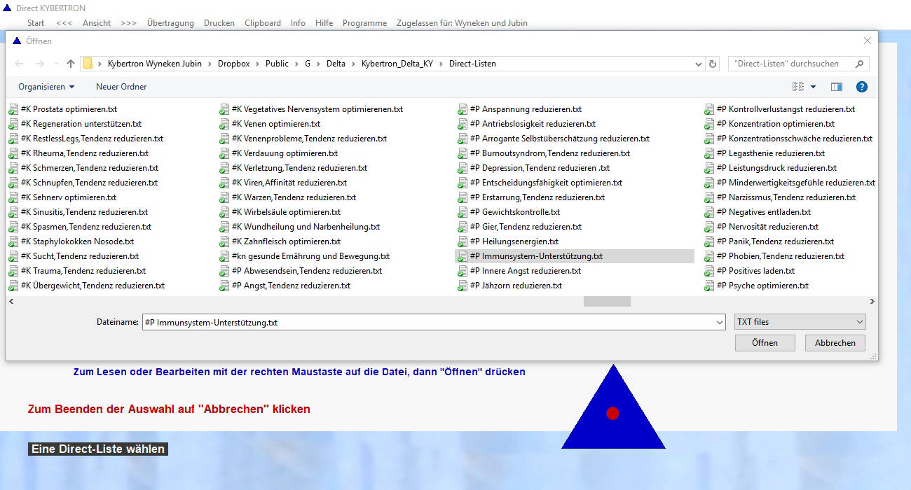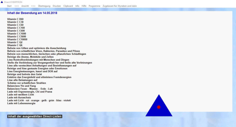 Sie können die Direct-Listen auch direkt senden, um Organe und Organsysteme bioenergetisch zu optimieren, das Immunsystem zu unterstützen, die Haut zu pflegen, die Organfunktion anzuregen, Affirmationen zu laden und vieles mehr. Neben vorhandenen Listen lassen sich auch Listen selbst erstellen.